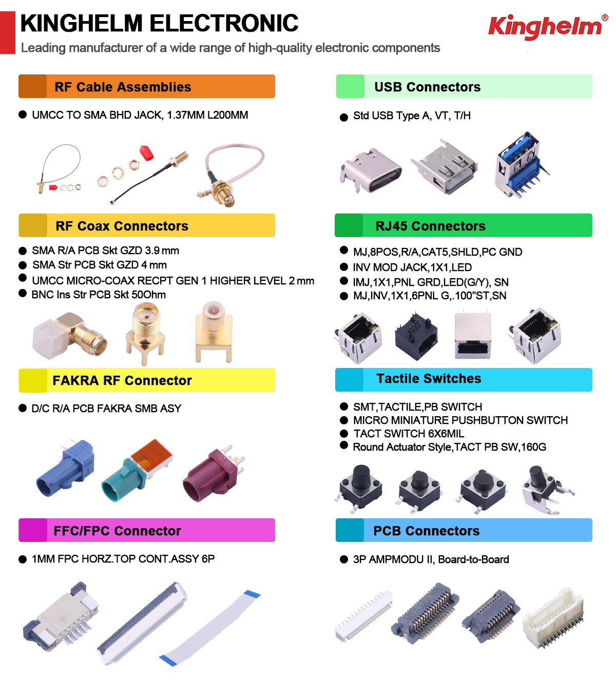 Kinghelm's USB connectors are compatible replacements for brands such as TE Connectivity (USA), USAKRO (Mei Han), and HRO (Hanrong, Korea).
