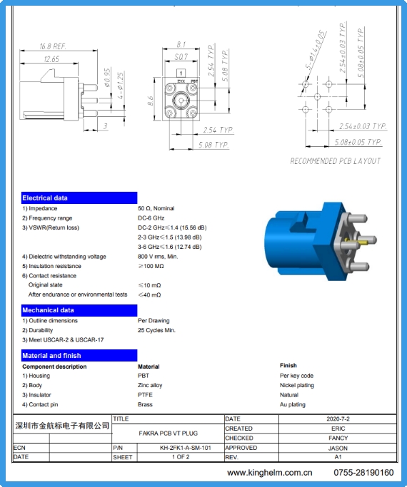 As RF technology becomes increasingly integrated into electronic systems, board-end RF connectors like the Kinghelm KH-2FK1-A-SM-101 play a vital role in stable signal transmission. With its 50Ω impedance, 0–6 GHz frequency compatibility, and wide temperature range, this FAKRA board-end antenna connector meets diverse application needs.