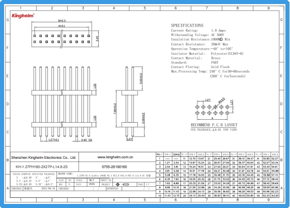 Kinghelm KH-1.27PH180-2X27P-L14.8-2S Specification