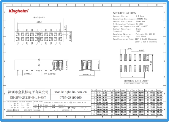 Kinghelm KH-2FH-2X13P-H4.3-SMT Specification