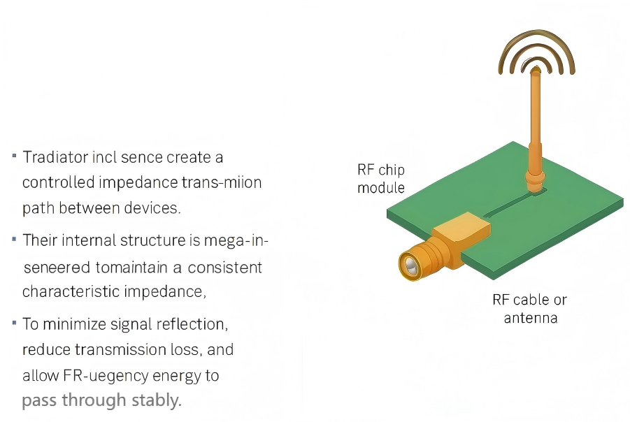 RF PCB connectors function by creating a controlled impedance transmission path between devices. Their internal structure is carefully engineered to maintain a consistent characteristic impedance so that: