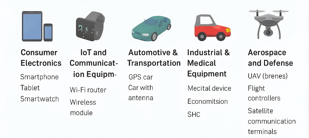 RF PCB connectors appear in almost every product that transmits wireless signals. Key industries include: