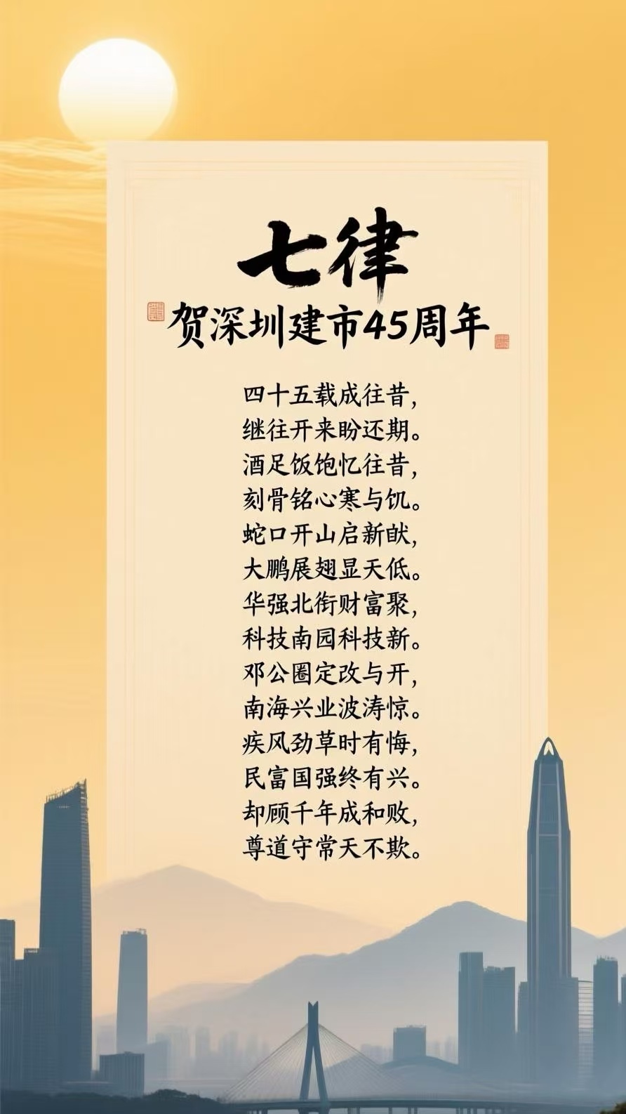 Song Shiqiang composed a poem to celebrate the 45th anniversary of Shenzhen's reform and opening-up.