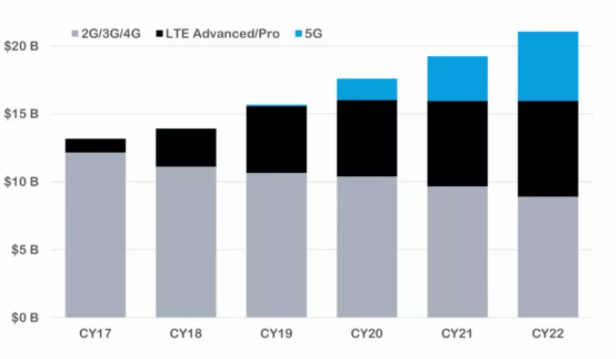 官方资料显示,RFMD和TriQuint当年合并成立的Qorvo,结合了双方的互补产品组合,特别是功率放大器放大器 (PA)、电源管理集成电路 (PMIC)、天线控制解决方案、基于开关的产品和优质过滤器,更是公司面向未来需求的射频“基石”,Qorvo也利用这些产品向客户交付行业内最全面的高性能移动设备解决方案组合。也正是因为这个合并,让新Qorvo有实力提升基础设施和航天行业提供的服务质量,并能为其它市场和应用提供先进的氮化镓 (GaN) 解决方案。 而以上正是Qorvo为当前正在迅猛发展的5G市场所准备。 回看2015年,4G发展如火如荼,但不少厂商已经开始投入到5G的研发中区。因为新标准拥有高速度、低延迟和高频率等特性,这就必然会给射频前端带来更大的提挑战。从某种程度看,这也是促进Qorvo成立的一大诱因。 首先看手机端,从当前的5G发展来看,多个国家和地区使用了不同的5G频段,那就要求手机需要支持更多的频段;此外,5G的高数据速率还要求手机搭配更多的天线。同时也推动多频带载波聚合和MIMO等技术的引入。这些新需求就引发了对射频的需求。而Qorvo领先的BAW和SAW滤波器、砷化镓PA、SOI天线调谐器和开关就能满足移动端的多样化需求。 值得一提的是,因为Qorvo同时拥有自己的工厂,其在产品生产和封装方面的经验,可以帮助他们打造一些更小模组化产品,解决5G时代手机的轻薄化和多摄像头带来的手机设计挑战。 其次,来到基站端,因为5G除了有Sub-6Ghz频段,还有毫米波频段,但无论是哪一个频段,这与以往的网络制式相比,都有了明显的提升。这不但带来了射频性能需求。和移动端一样,基站端同样也有天线阵列、波束成形和载波聚合等技术的引入。这就拥有更高性能的射频器件,其中GaN更是成为了开发者的选择。相关数据显示,把GaN器件应用到毫米波5G基站,可以减少40%的功率损耗、降低94%的die空间,在成本方面也会带来80%节省。而这也是Qorvo所擅长的。 因为坐拥如此多领先的射频器件和技术,这就帮助Qorvo在过去几年里获得了不错的业绩表现。 考虑到市场对5G有积极的展望,射频市场也前景可期,我们可以预见Qorvo在这个领域的未来成长机遇。而相关统计也显示,到2022年,射频市场的总体规模将超过200亿美元,特别是5G射频,更是增长迅猛。