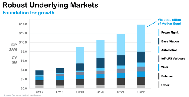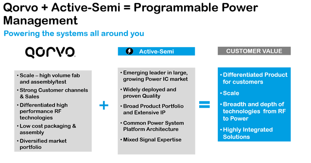 Qorvo 总裁兼首席执行官 Bob Bruggeworth 曾所,通过收购 Active-Semi,Qorvo 将会增加提供给现有客户的 IDP 产品(包括 5G 基站、有源相控阵、汽车和物联网),并将其的业务范围拓展到新的高增长电源管理市场。Qorvo深信,通过利用公司的全球规模、销售渠道和客户关系,在多个市场上加快采用 Active-Semi 创新的模拟/混合信号解决方案,我们将会获得大量机会。”