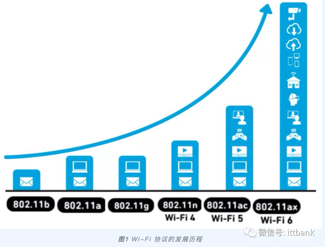 在过去的 20 年中该标准通过引入诸如 802.11n、802.11ac 和 802.11ax(Wi-Fi 6)等新协议不断推进自身发展。新标准支持更高阶的调制方案,例如 64 QAM、256 QAM 和 1024 QAM。这些新标准支持向单个客户端或多个客户端同时传输多个数据流;除提高峰值数据速率外,还努力加强了表征系统对可用频谱的利用程度的频谱效率。为提高网络效率和网络容量,已引入诸如多用户多输入多输出(MU-MIMO)和正交频分多址(OFDMA)等的多用户技术。Wi-Fi(802.11)标准一经发布和实施,世界便随着市场的开放及新技术的涌现而开始发生变化。每个新标准都建立在以前的标准基础之上,并在速度和可靠性层面有所改进。