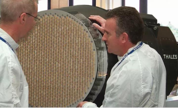 实际上到了冷战后期,为了让机载雷达获得更快的扫描速度和更强大的性能(比如同时实现搜索跟踪火控制导对地探测等),工程师为机载雷达使用了相控阵天线,且至今仍被视为先进技术。相控阵天线在外观上和常见的平面阵列天线并没有太大区别,甚至可以简单理解为在普通机扫平面阵列天线的基础上修改馈电结构而得到(后端发射/接收机和信号处理算法当然会有很大变化)。天线单元后端加入移相器可以得到无源相控阵天线(PESA),不喜欢移相器加入TR组件,即可得到有源相控阵天线(AESA)。对于天线工程师而言,同一个天线阵面,即可以做AESA,也可以做PESA。因此,对于平面阵列天线而言,具有很大升级成为相控阵天线的潜力。