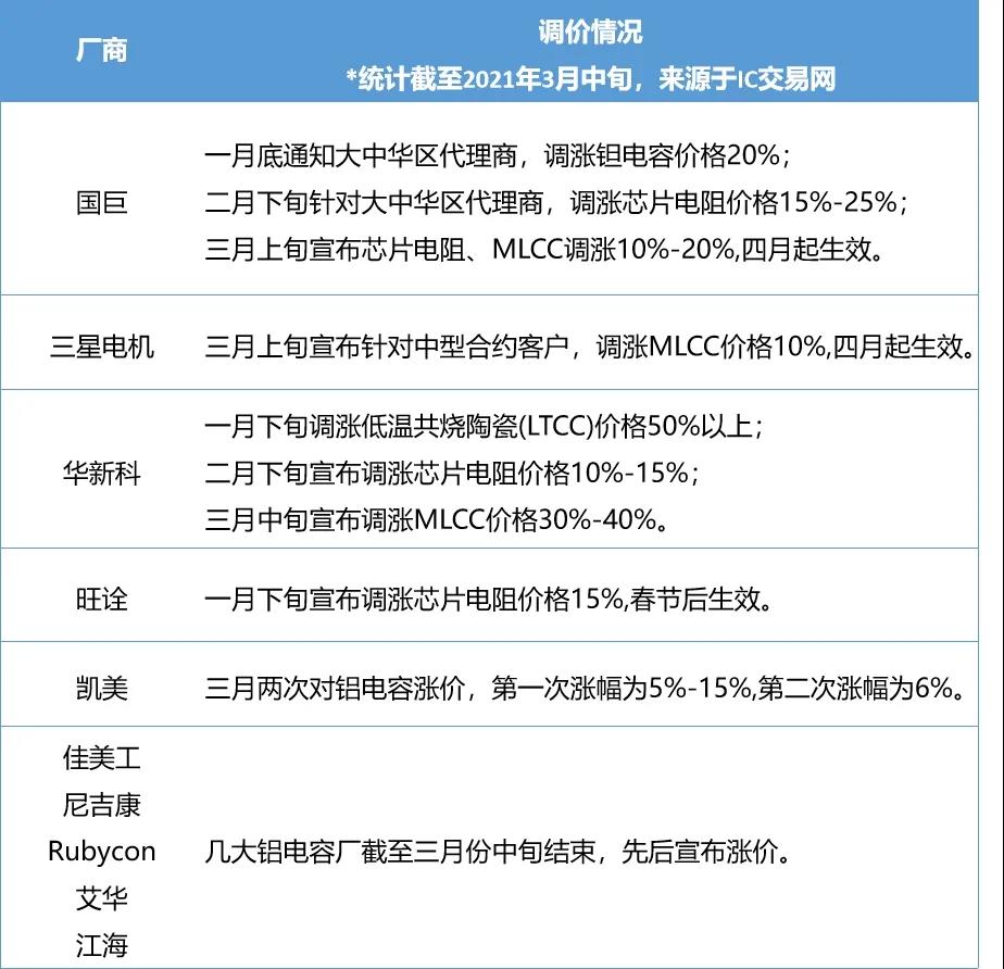 各大被动元件厂商调价情况如下:
