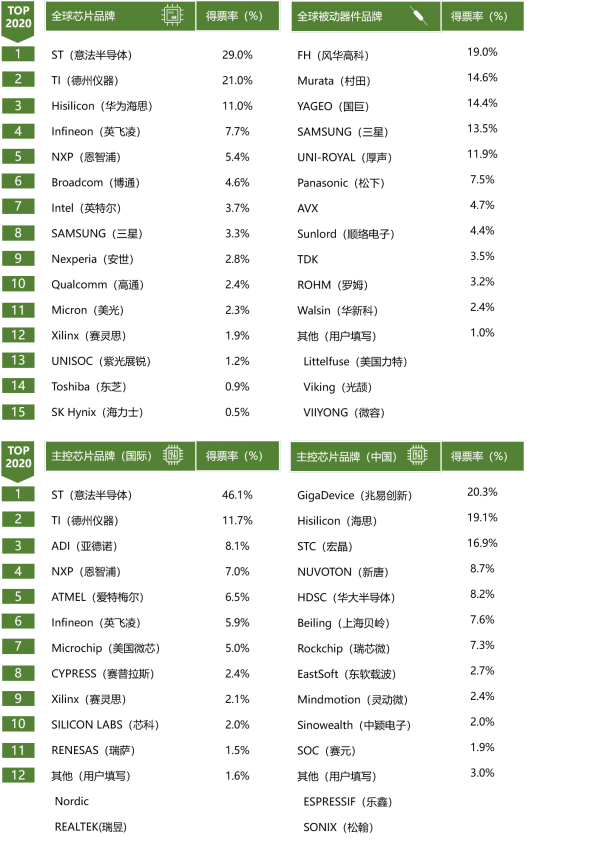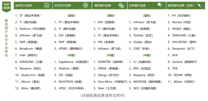 Finally, in order to study online users' perceptions of chip manufacturers and brands, the Chip master Research Institute continued to conduct a series of voting on "200 Years of Your Most Concerned Chip Manufacturer/Brand". / International brands were selected.