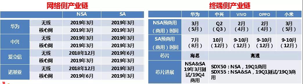 R15的2个版本标准(Option3和Option2)分别于2017年12月和2018年6颁布,Late drop版本标准(Option4/7)2019年6月份颁布。真正实现5G全部功能的R16标准将在2020年3月份冻结6月份颁布。从标准进程看,目前网络只能支持eMBB和基本URLLC业务。