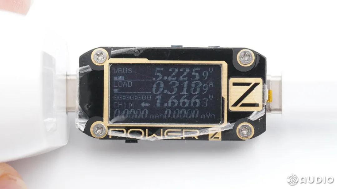 我爱音频网采用ChargerLAB POWER-Z KM001C便携式电源测试仪对魅族 POP2s 真无线耳机进行有线充电测试,充电功率约为1.6W。
