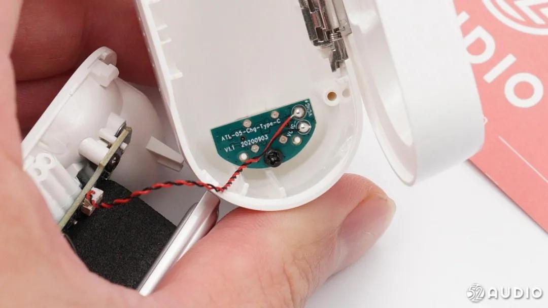 充电盒底部充电接口所在的PCBA通过导线与主板连接。