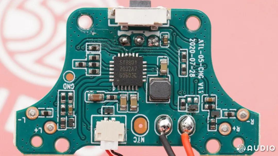 魅族 POP2s充电盒采用Type-C接口输入电源,思远半导体SY8801芯片支持28V输入耐压,内置全功能的充放电过压、过流、过温、短路保护等功能,负责电池的充放电;思远SY8801还集成了I2C通讯功能和内部通讯隔离功能,新唐科技N76E003AQ20 MCU可以读取、配置电源内部的功能以及电池充放电管理的参数,负责整机控制。开盖即连功能依靠霍尔元件实现,软包电池容量350mAh,与前代相同。