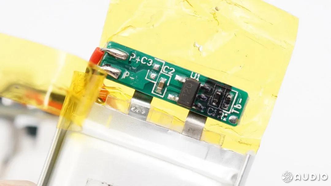 电池保护板特写,一颗一体化IC提供电池的保护功能。