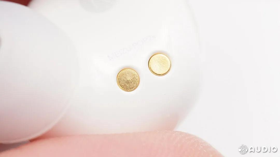 给耳机电池充电的触点,附近印有产品名“MEIZU POP2s”。