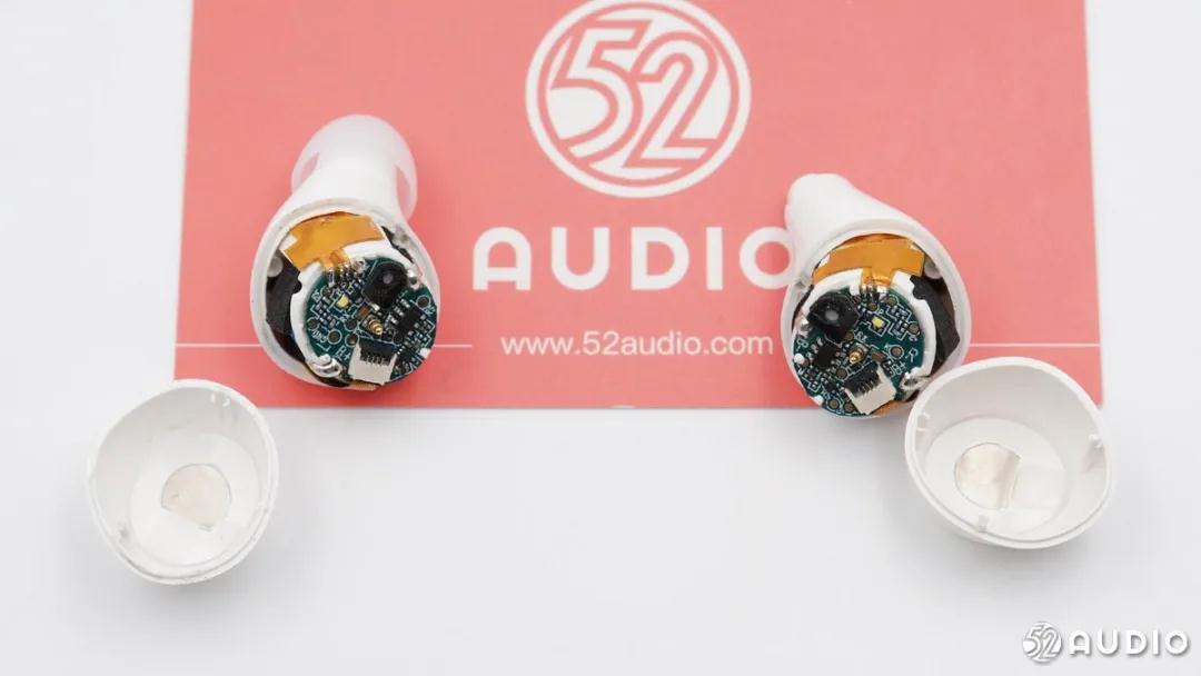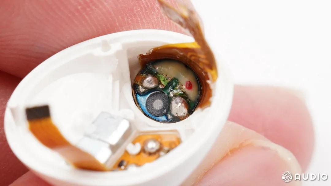 下面我们继续来拆解耳机部分。魅族 POP2s 真无线耳机的外型延续了POP系列的经典设计,耳机壳体遵循黄金分割比例,螺旋状的设计更加贴合耳廓,能够增强佩戴的稳定性和舒适性。