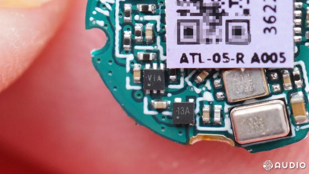 另一侧电路展示,二维码标签下方是蓝牙主控芯片。