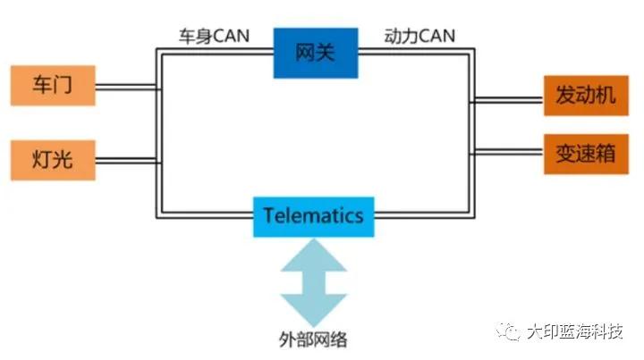 由于CAN总线技术的成熟和可靠,目前基本所有汽车的车内总线网络主要都是CAN,下图是一般车辆的总线网络。