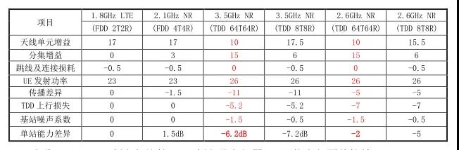 Using the B3 band (1.8 GHz frequency band) in the existing network as the reference point, the theoretical link budget values for the 1.8 GHz, 3.5 GHz, 2.1 GHz, and 2.6 GHz frequency bands were calculated. A comparison of the uplink link budget results shows that the uplink capability of the 3.5 GHz frequency band is 7.7 dB worse than that of the 2.1 GHz frequency band (4T4R), and 4.2 dB worse than that of the 2.6 GHz frequency band.