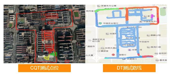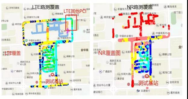 a) Deploying 2.1 GHz 4T4R LTE equipment and 3.5 GHz 64TR NR equipment in the same station, with the same height, azimuth, downtilt angle, and other parameters. During the test, surrounding base stations were temporarily shut down and transmit power was adjusted to expand the coverage range of the main measurement cell to over 500 meters.