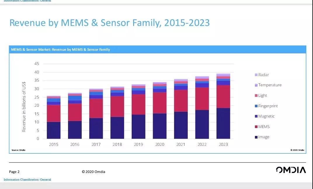 而对于主角成长走势,IHS高级分析师 Manuel Tagliavini表示,图像传感器市场增长态势最为强劲。相反,目前规模占优的MEMS领域,上升趋势不太理性。预计到2023年,图像传感器规模可超越MEMS市场。