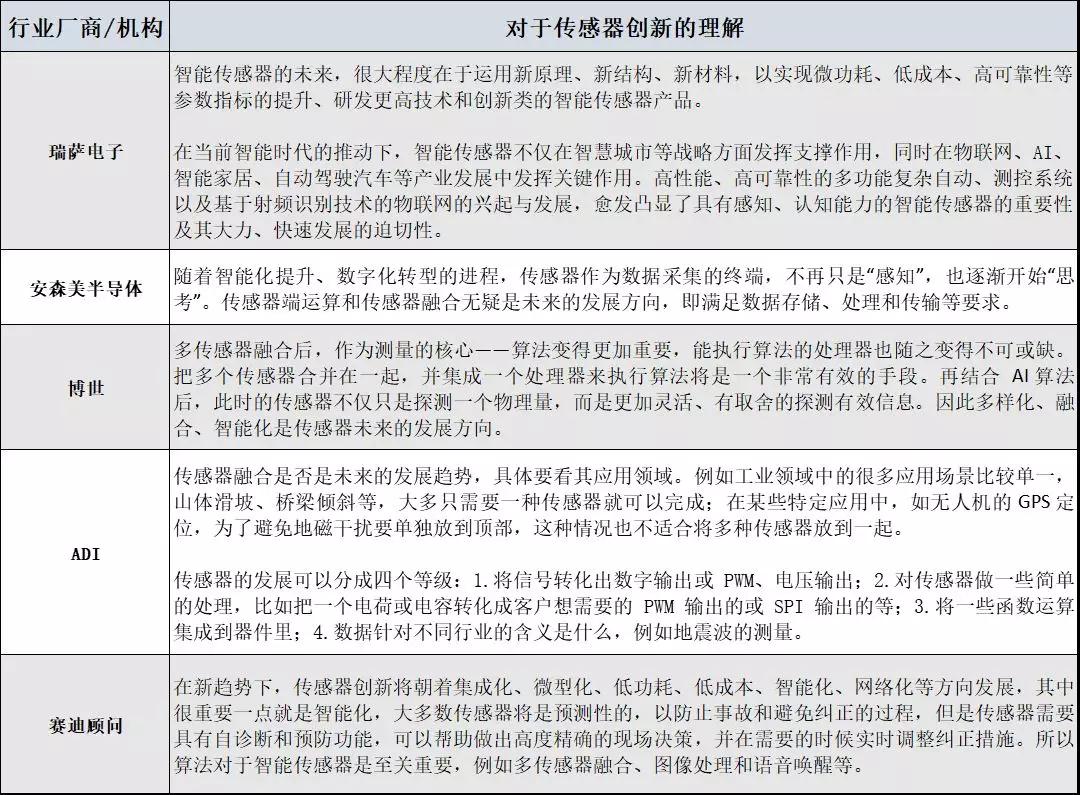 新机遇推动技术与应用创新,创新催生出新的市场机遇,两者如影随形。关于传感器的创新方向,行业机构和厂商表达了各自的观点: