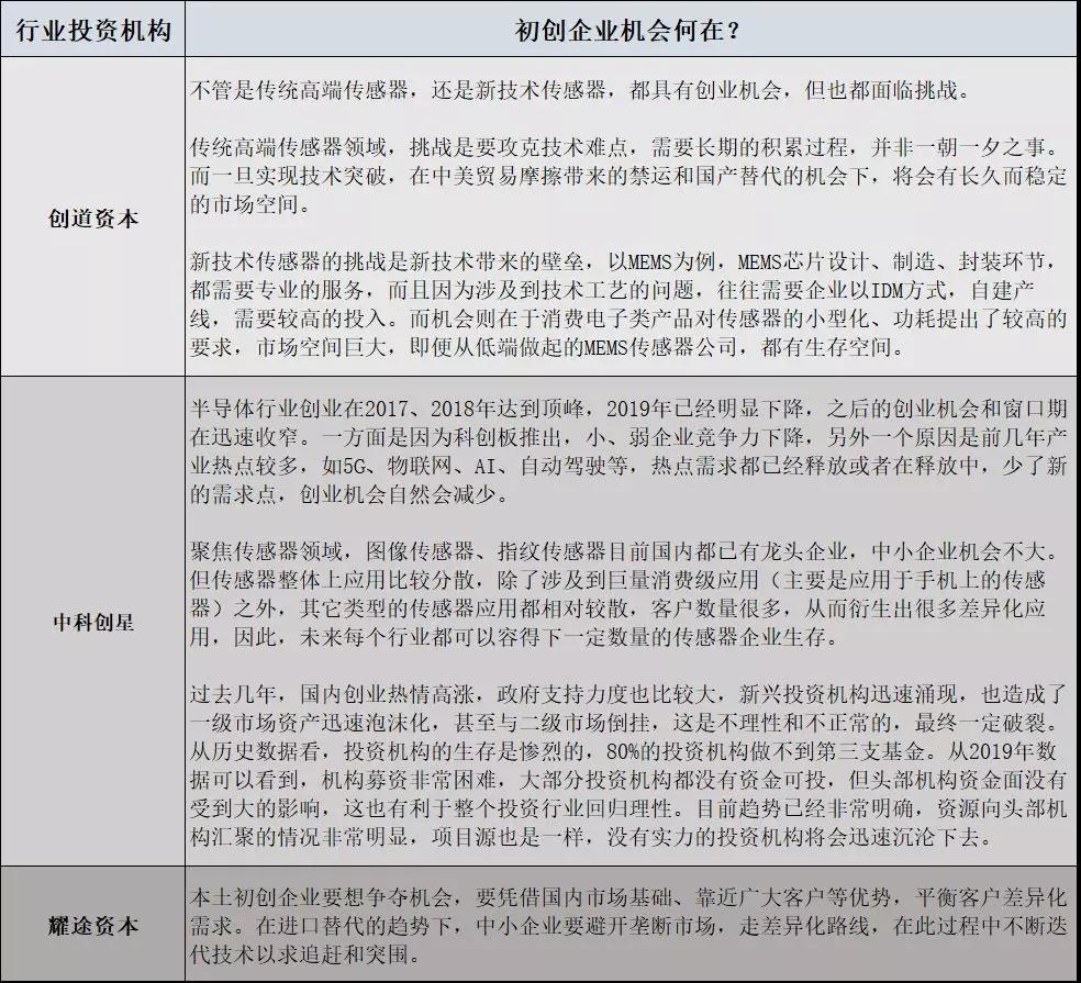 那么随着传感器产业及应用市场的逐渐成熟,初创企业是否还有进入该市场的机会与方式?行业投资机构就此问题向笔者进行了答复。