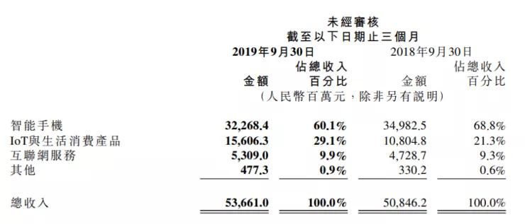 11月27日晚,小米集团发布了2019年第三季度业绩报显示,当季营收536.6亿元,同比增长5.5%。