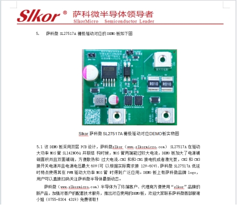 5. The DEMO board corresponding to the Slkor SL27517A gate driver is shown below: