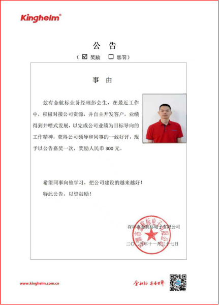 Outstanding Sales Representative of Kinghelm: Li HualanFrom February 2 to February 6, 2026, fo