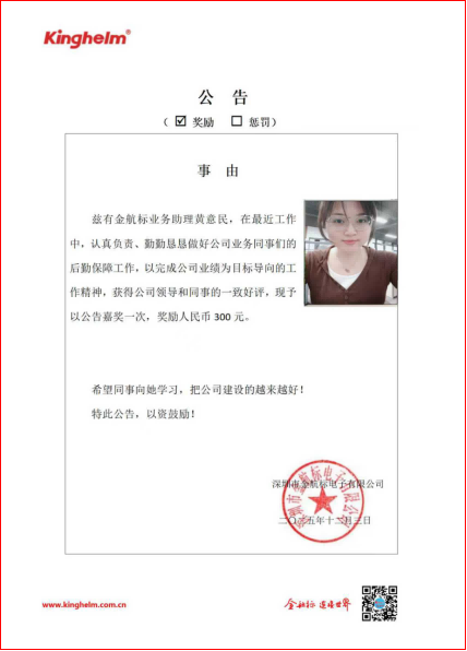In 2018, Shenzhen Kinghelm Electronics Co., Ltd. (www.kinghelm.net) was officially granted an i