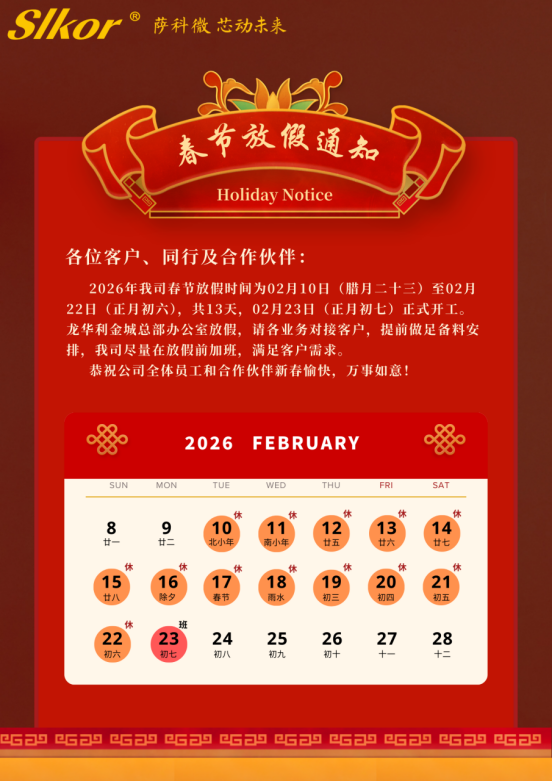 SLKOR Semiconductor 2026 Spring Festival Holiday Notice