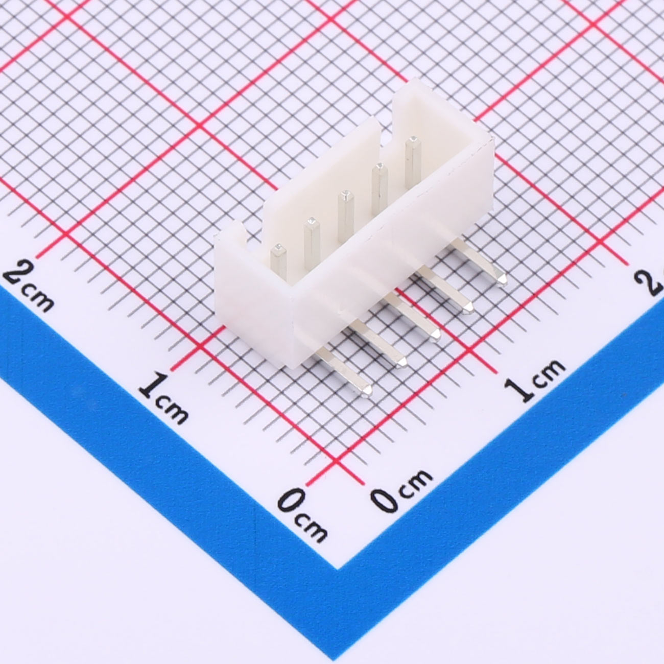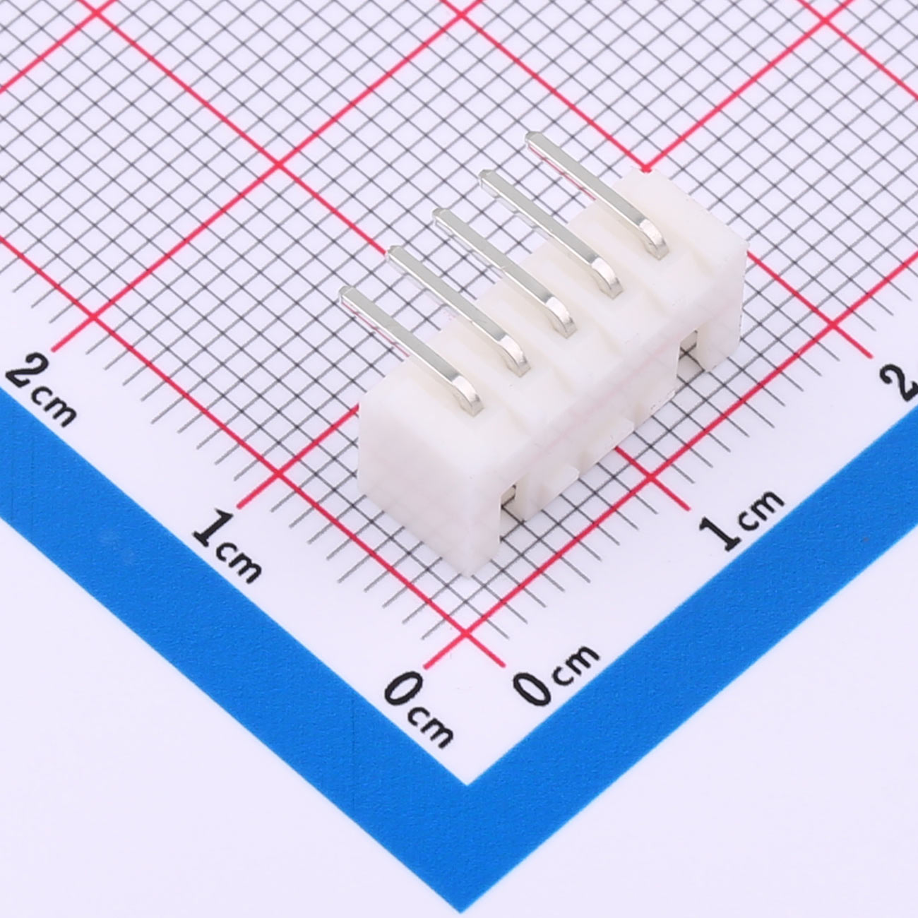 Product Features● Wire-to-board male header, 1x5P● 2.54mm spacing, HA bent pins with latch● White ho