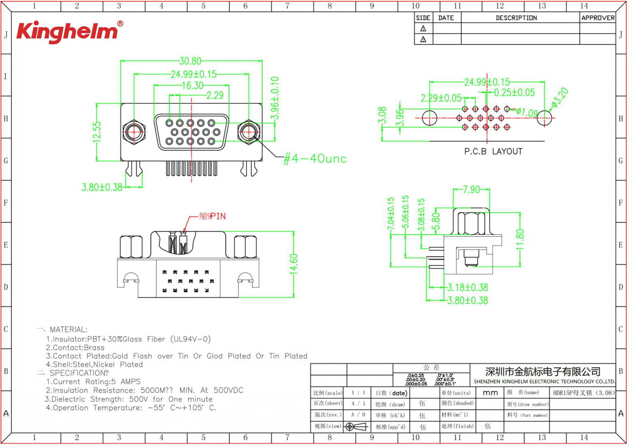 RoHS Compliant HDMI Connectors | Reliable & Fast Shipping | Free Samples for HDMI Product:KH-HDR15P-F3.08 Category:Data Signal Classification:HDMI Connector Type:VGA Connector