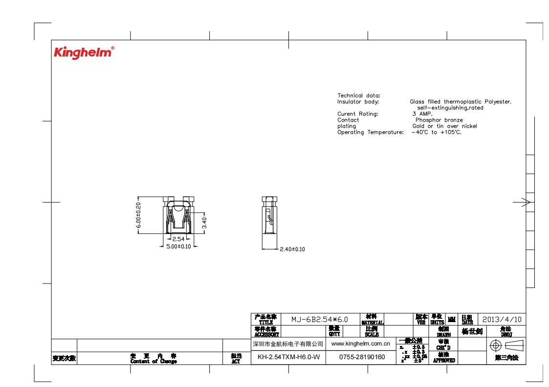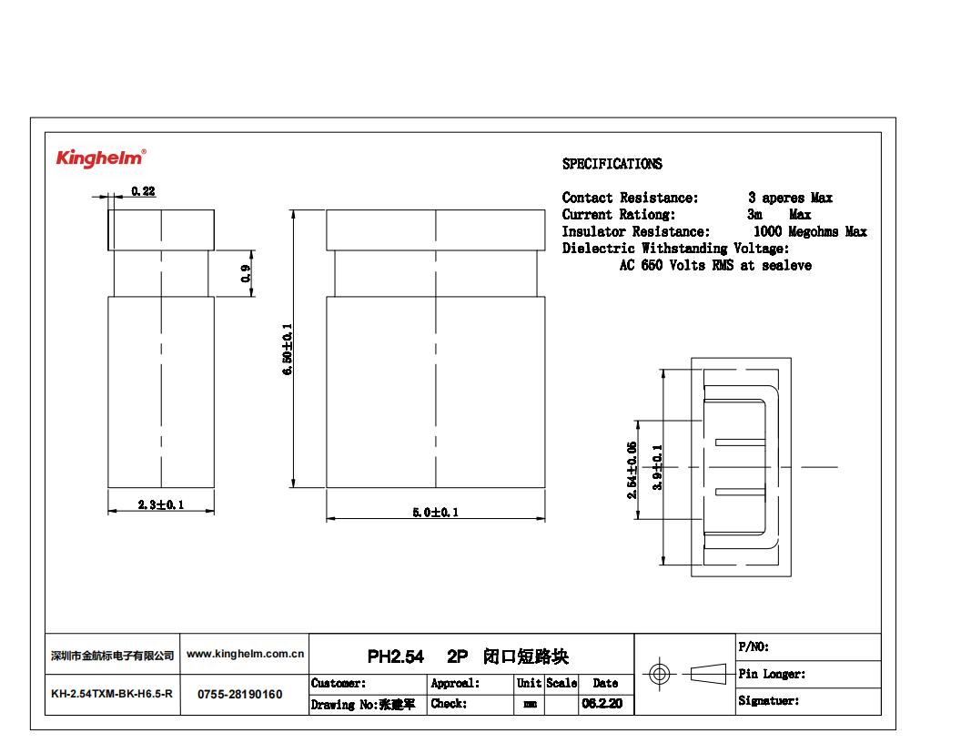 Kinghelm Short Circuit Cap/Jumper Cap--KH-2.54TXM-BK-6.5H-W Product:KH-2.54TXM-BK-6.5H-W Category:Plug-in Unit Classification:Short Circuit Cap Type:Jumper Cap Mounting Style:P=2.54mm Rated current/rated voltage:Capped