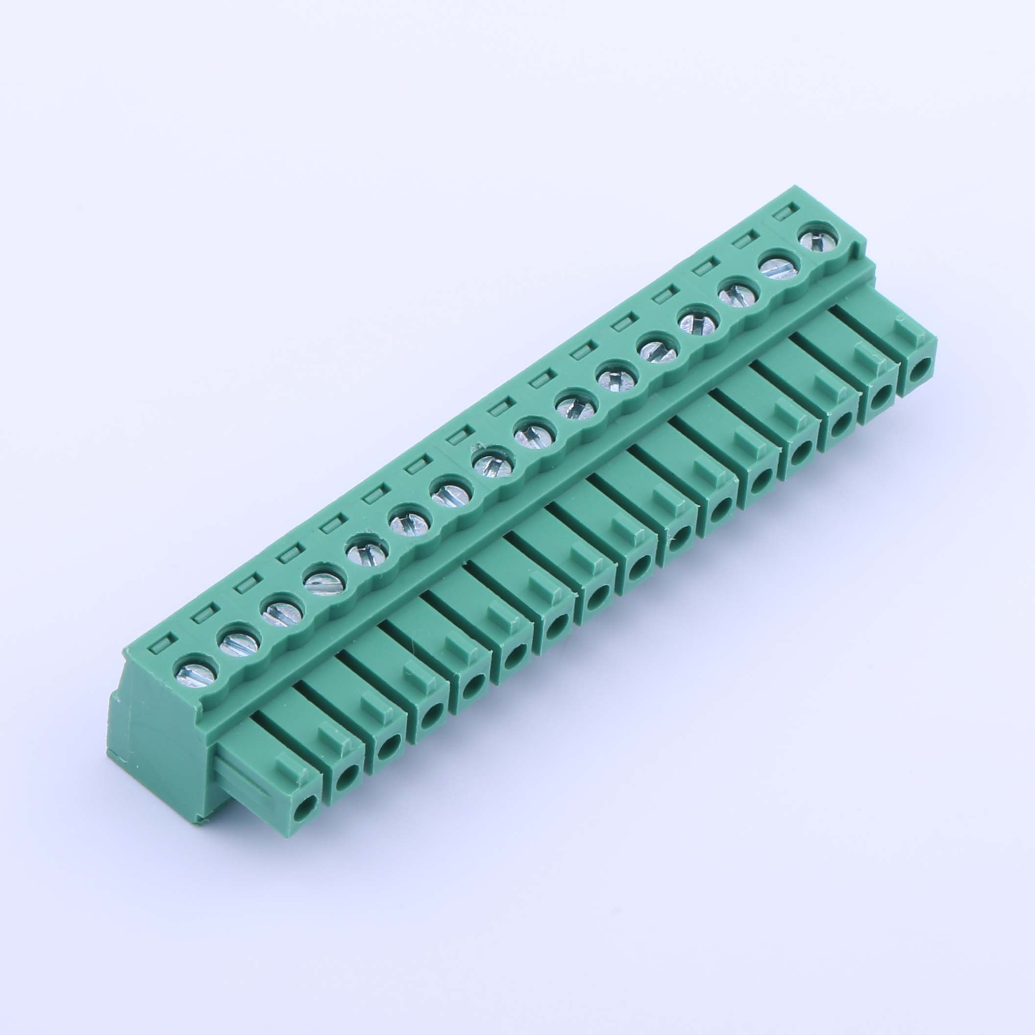 Pluggable Terminal Block, 3.81mm pitch, 16pin, 8A 300V, KH-15EDGRC-3.81-16PG Product:KH-15EDGRC-3.81-16PG Category:Connector Classification:Terminal Block Connector Type:Pitch: 3.81mm